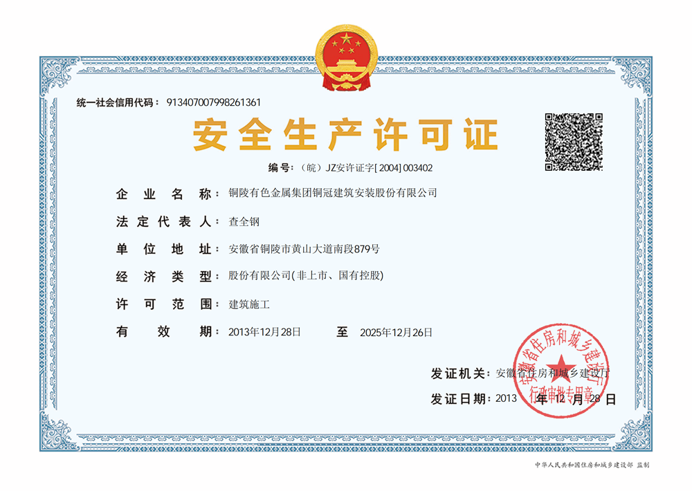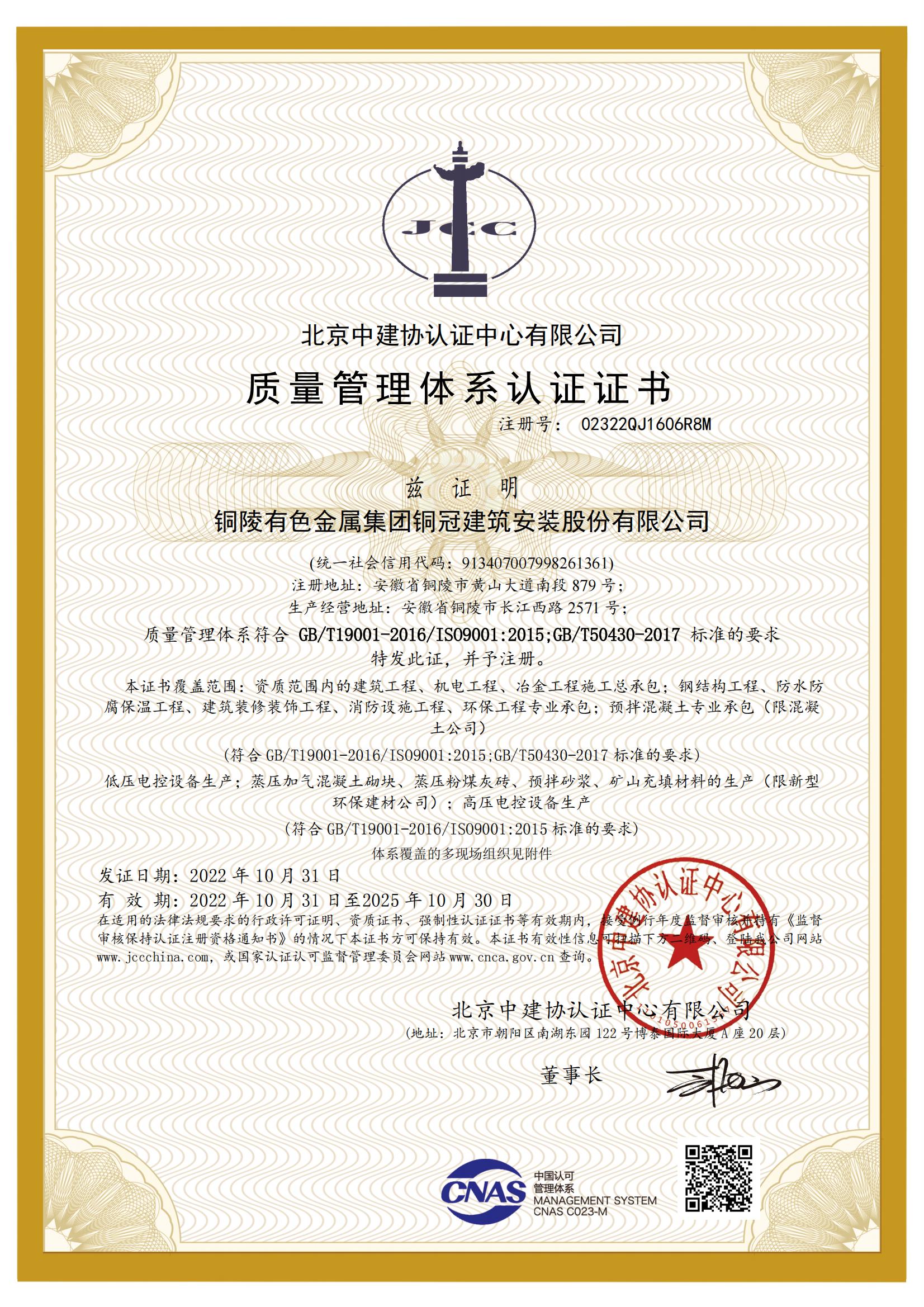 • 有色金屬工業(yè)建設(shè)工程質(zhì)量檢測機構(gòu)資質(zhì)證書